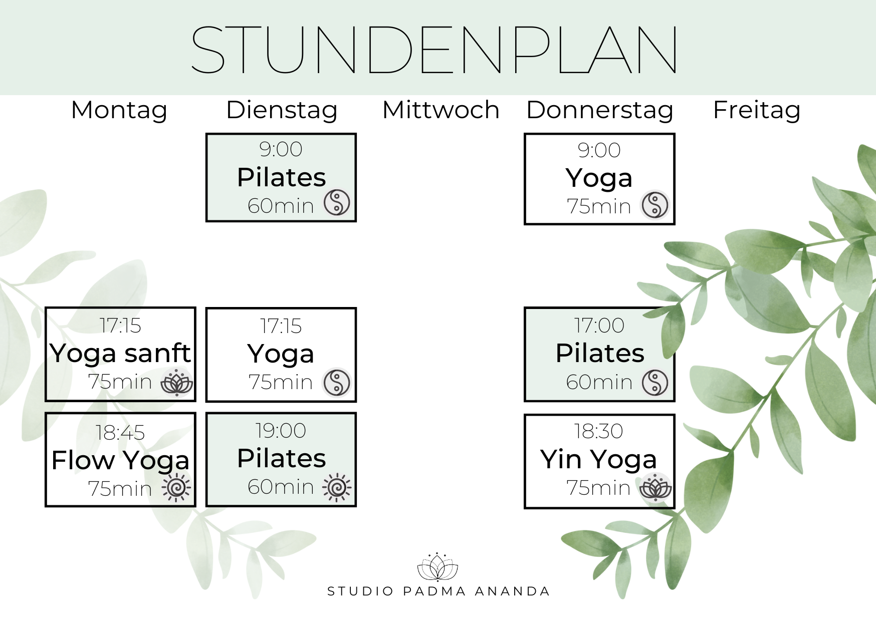 Hier erwarten dich wohltuende, sanfte aber auch kräftigende und fordernde Pilates- & Yogaeinheiten. Bestimmt ist auch etwas für dich dabei!