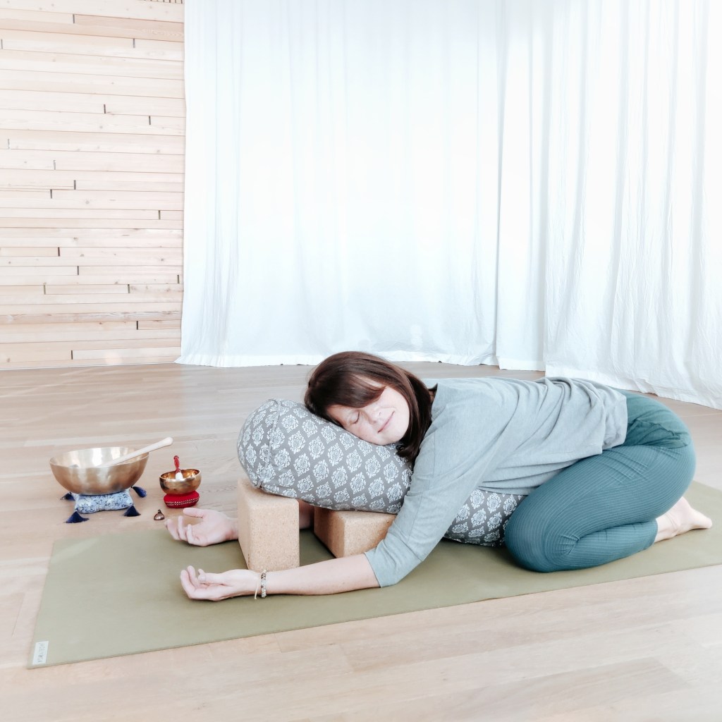 Yin Yoga ist eine sanfte Praxis und ein ruhiges Yoga und das Gegenstück zu yang-orientierten aktiven Yogastilen. Die Yoga-Positionen (Asanas) werden ohne aktive Muskelkraft (so passiv wie möglich) über einen längeren Zeitraum (2 bis 5 Minuten) gehalten. Yin Yoga lehrt auf sanfte Weise loszulassen, körperlich wie auch geistig.